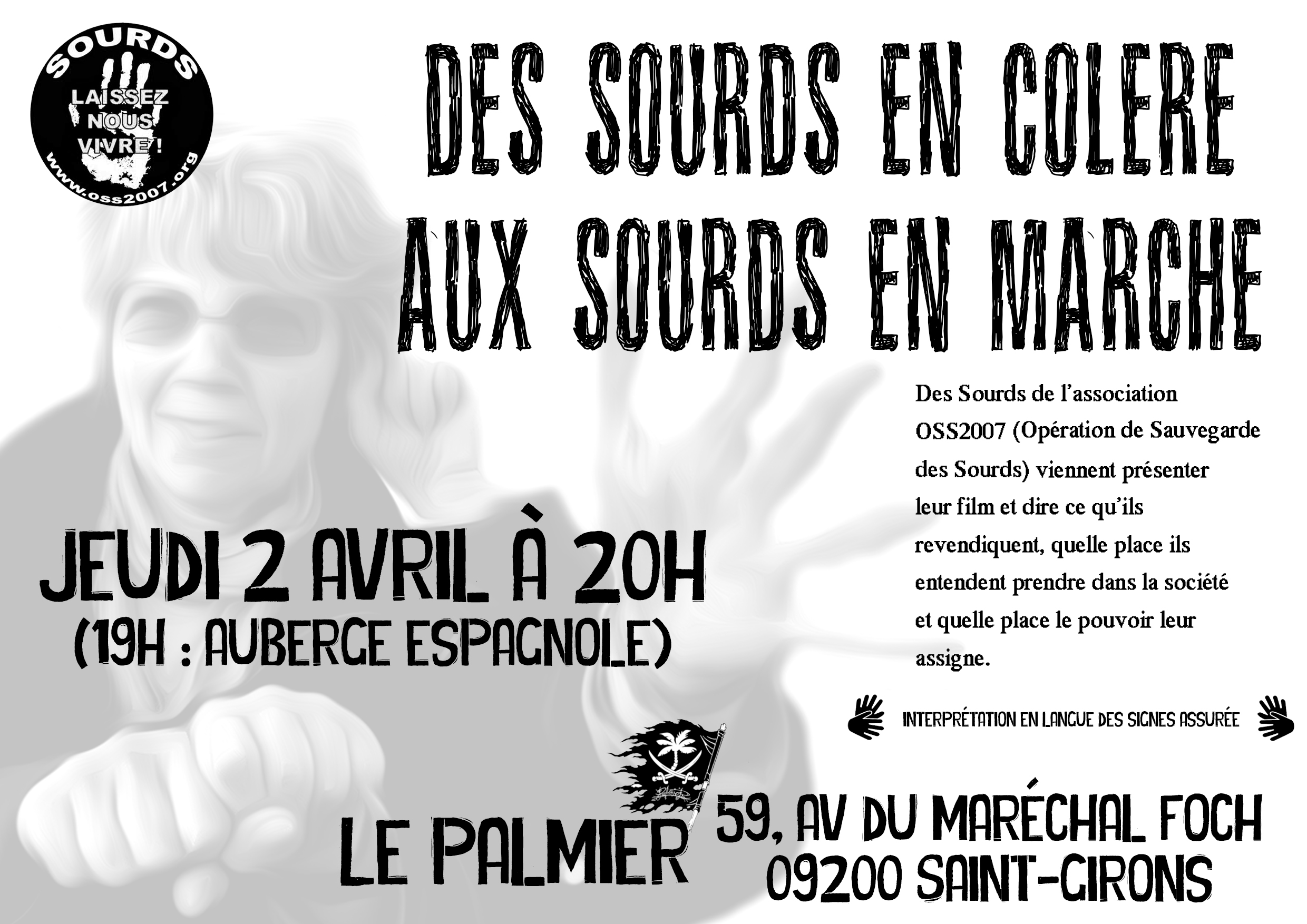 Des sourds de l’association OSS2077 (Opération de Sauvegarde des Sourds) viennent présenter leur film et dire ce qu’ils revendiquent, quelle place ils entendent prendre dans la société et quelle place le pouvoir leur assigne.